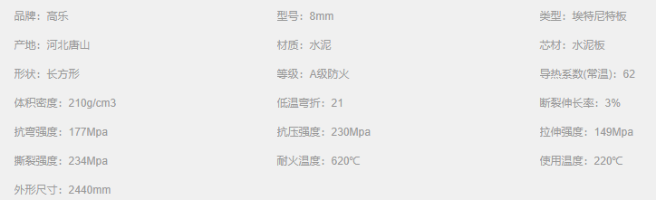 防火絕緣:不燃 A 級,火災(zāi)發(fā)生時板材不會燃燒,不會產(chǎn)生有毒煙霧;導(dǎo)電系數(shù)低,是理想的絕緣材料。