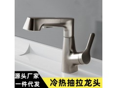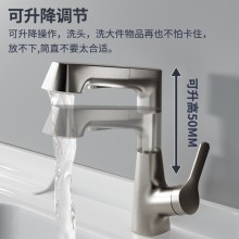 全銅升降抽拉式多功能槍灰色水龍頭衛(wèi)生間洗臉洗手盆黑色冷熱龍頭